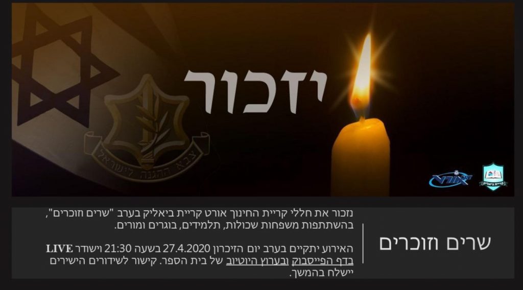 בדף הפייסבוק ובערוץ היוטיוב של קרית החינוך אורט קרית ביאליק ישודר אירוע שרים וזוכרים. לפרטים
